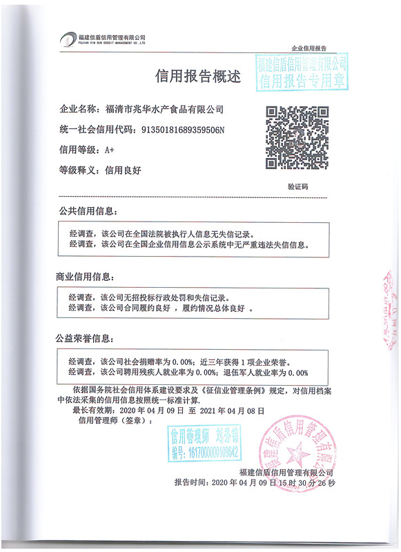福清市兆華水產食品有限公司2020-1