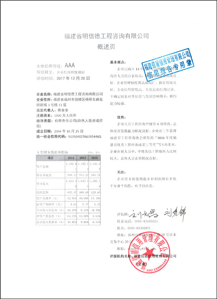 福建省明信德工程咨詢有限公司 XDPJ201712221