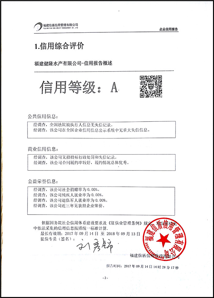 福建健隆水產有限公司 XDBG201709018