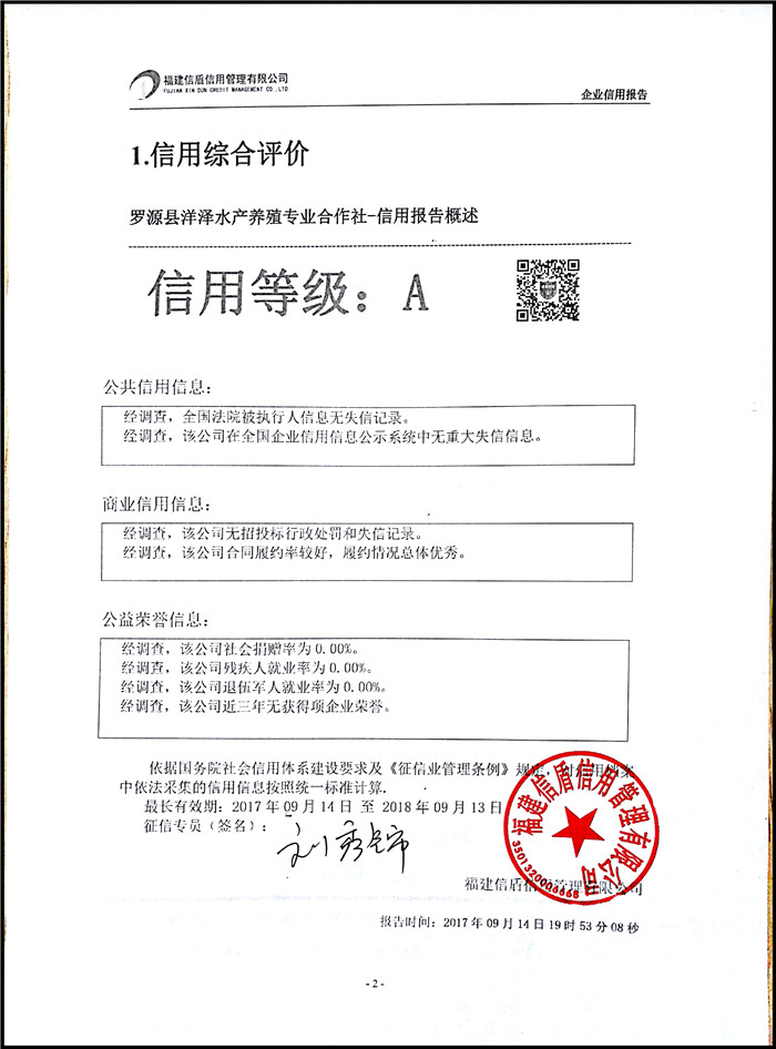 羅源縣洋澤水產養殖專業合作社 XDBG201709021