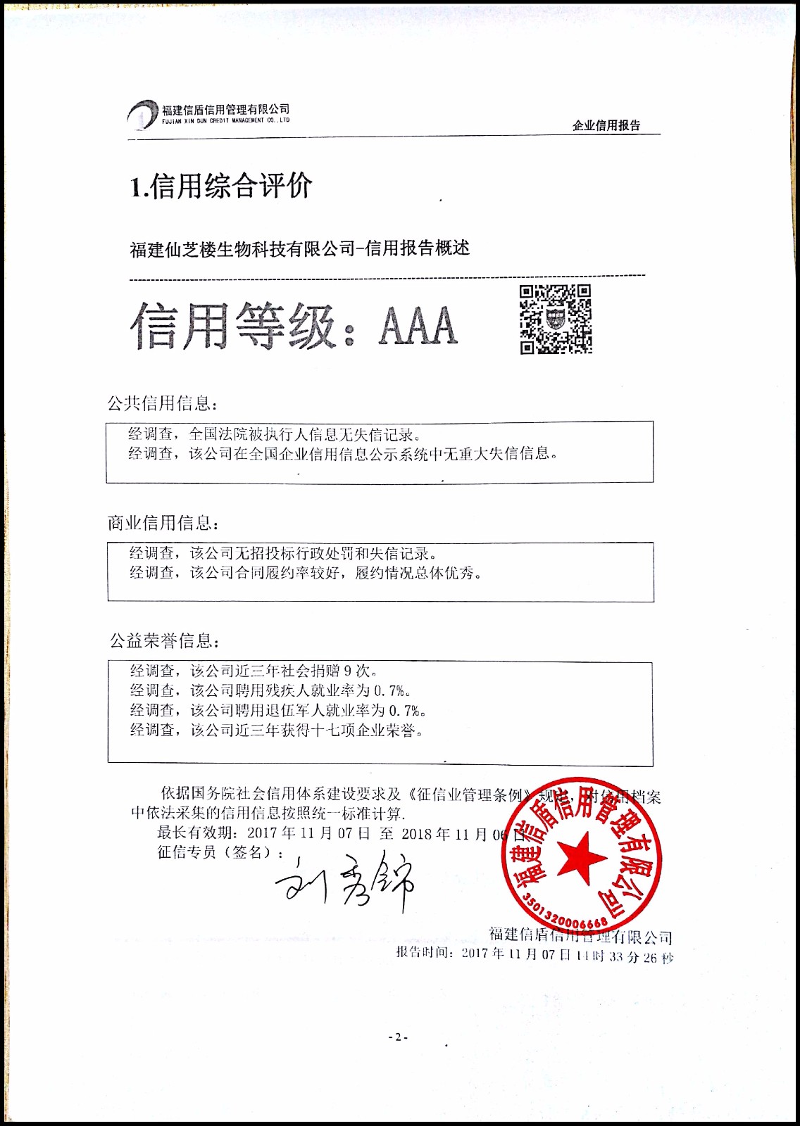 福建仙芝樓生物科技有限公司 XDBG201711008