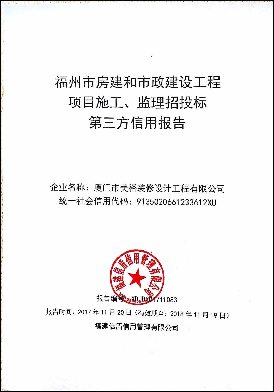 廈門市美裕裝修設計工程有限公司 XDJB201711083