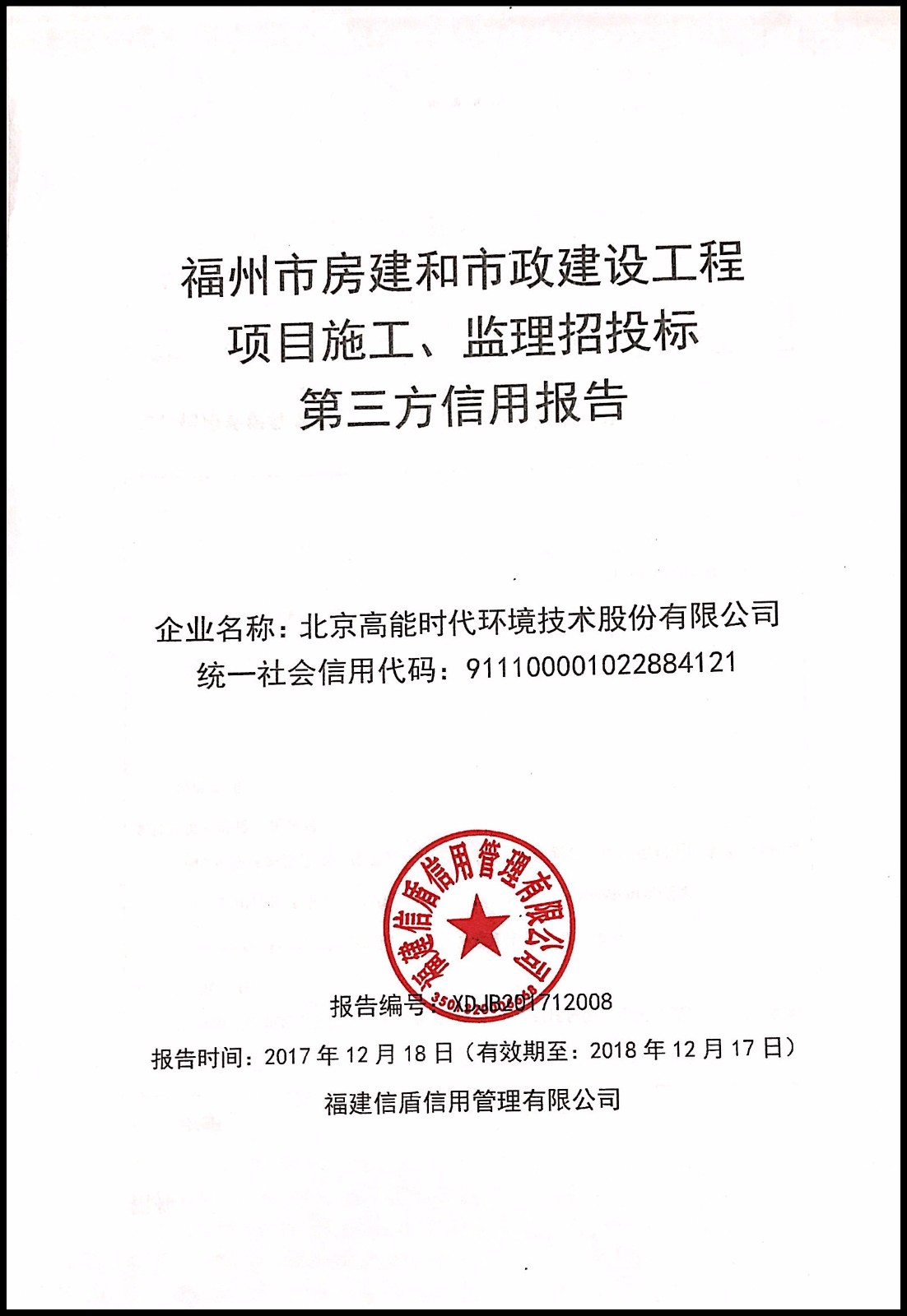 北京高能時代環境技術股份有限公司 XDJB201712008