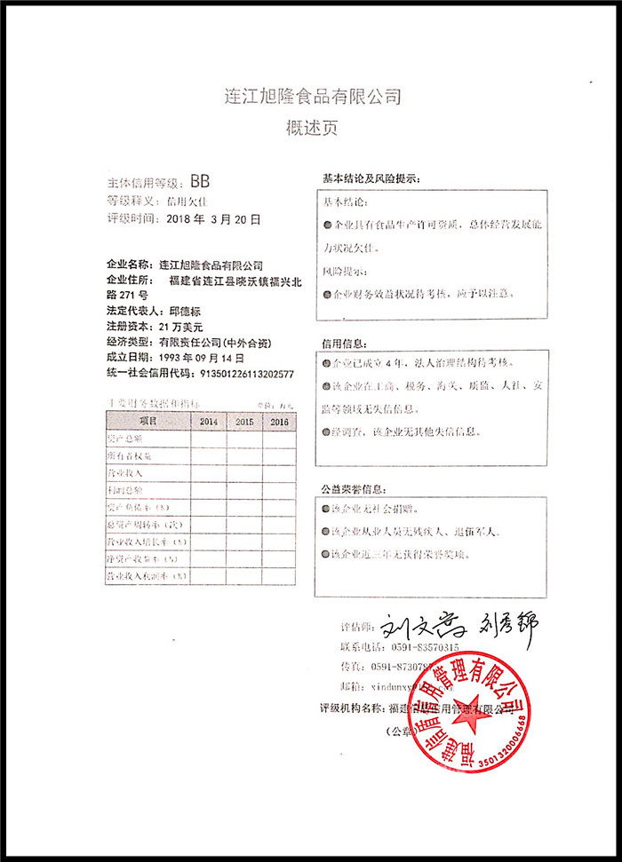 連江旭隆食品有限公司 XDPJ201803130