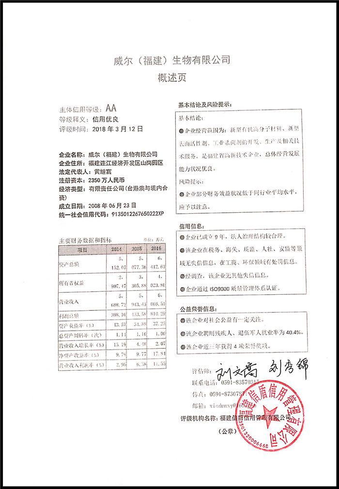 威爾(福建)生物有限公司 XDPJ201803201