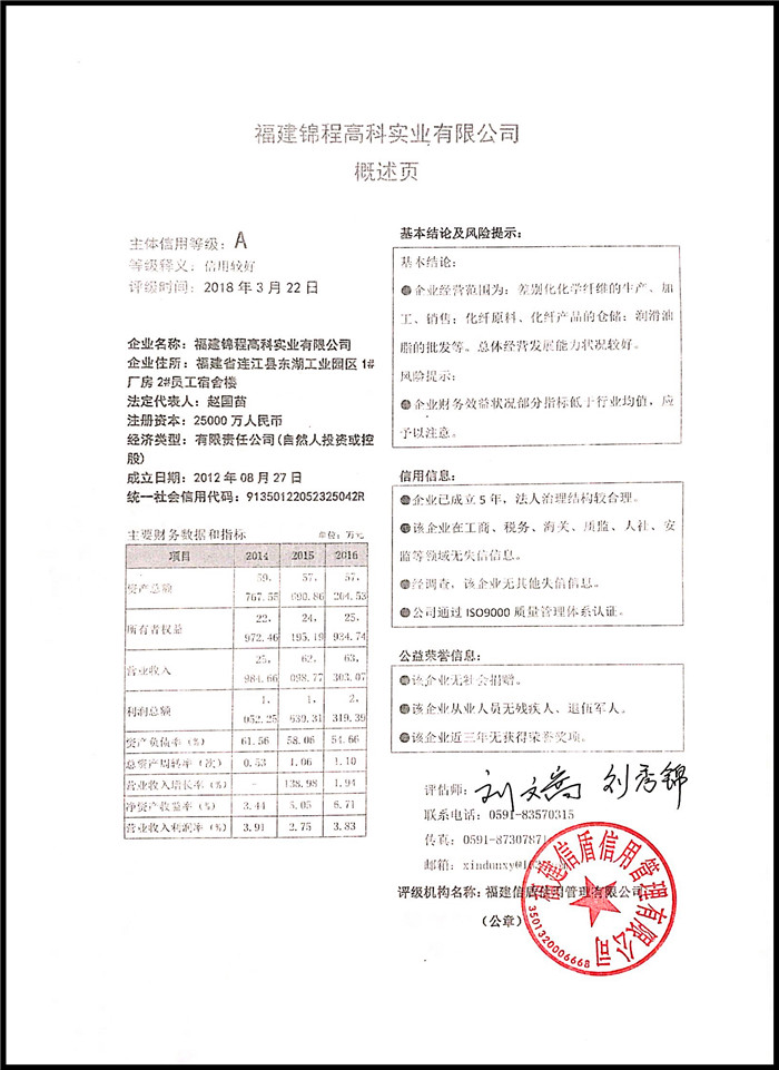 福建錦程高科實業有限公司 XDPJ201803206