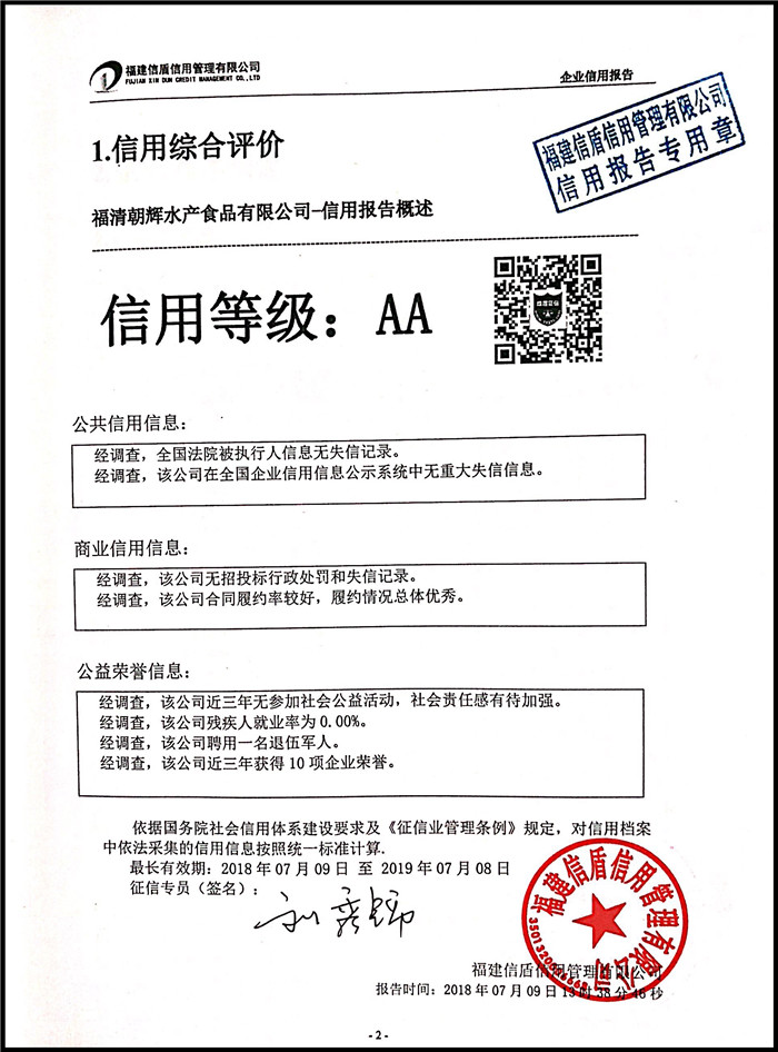 福清朝輝水產食品有限公司 XDBG201807001