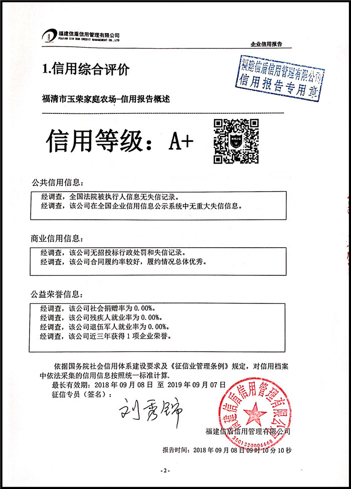 福清市玉榮家庭農場 XDBD201809012