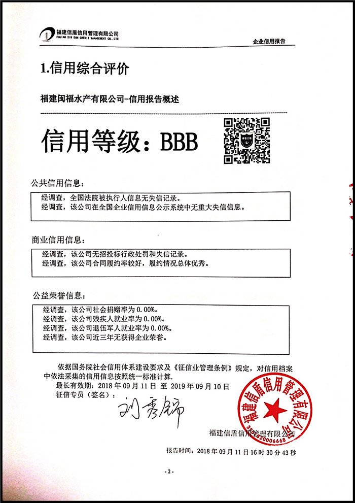 福建閩福水產有限公司 XDBD201809019