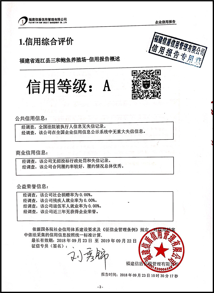 福建省連江縣三和鮑魚養殖場 XDBG201809028