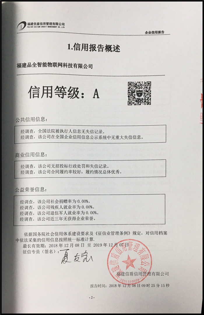 福建品全智能物聯網科技有限公司 XDBG201812198